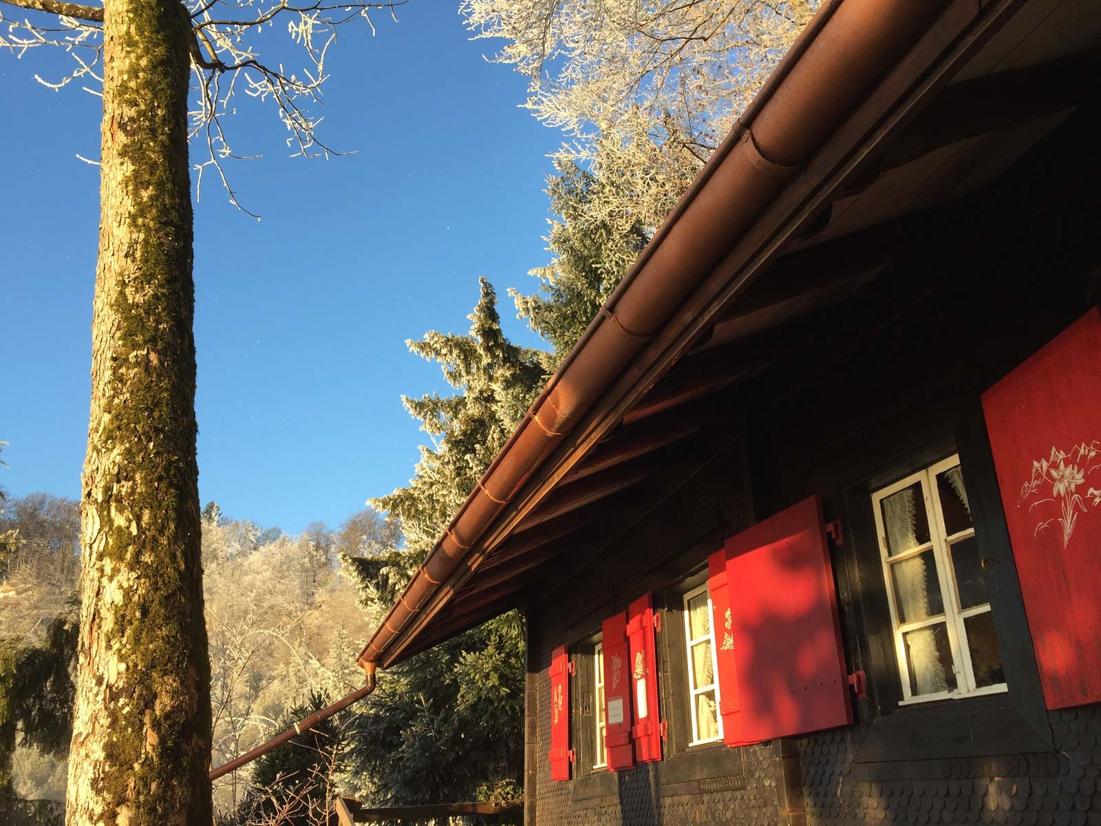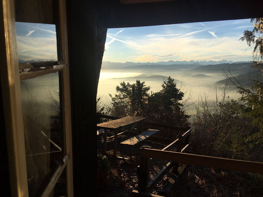 Bei uns geniesst du nicht nur eine spektakuläre Sicht auf die Fallätsche, den Zürisee und die Uetlibergkette, sondern wirst dich auch fühlen wie vor 120 Jahren. Das Teehüsli hat weder Strom aus der Steckdose noch fliessendes Wasser, dafür aber viel Charme und Ruhe. Beim nahen Brunnen holen wir mit Eimern das Wasser und der Holzofen dient uns zum Kochen und Heizen. Und wenn es an Wintertagen früh eindunkelt, erhellen Kerzen und kleine Solarlampen die heimelige Stube.